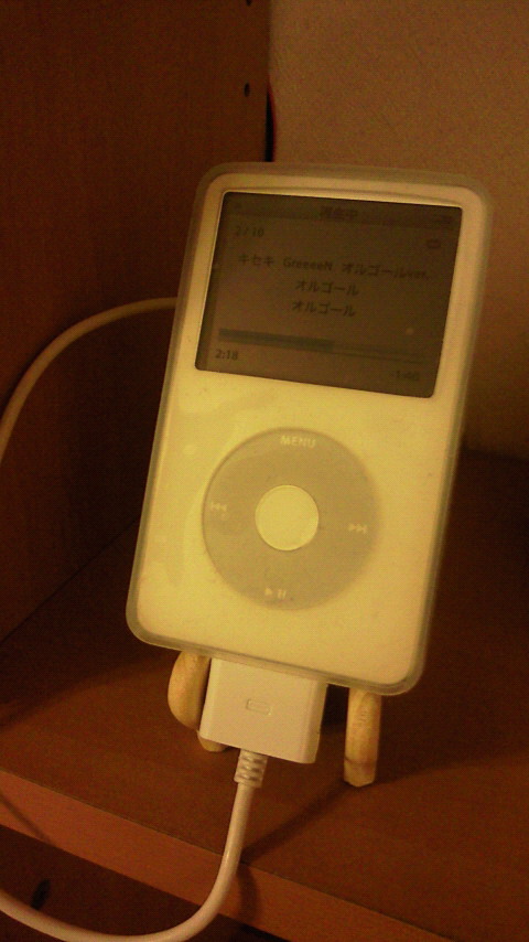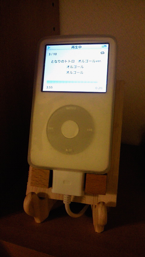 ど~にか、iPodを立てて曲名やらディスプレーが見えるようにしたい