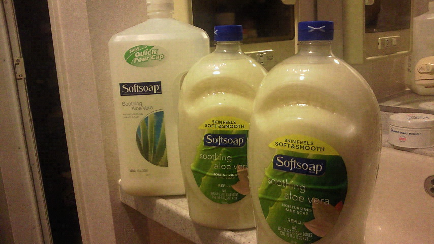 今回の買い物で気づいたこと、ハンドソープが大きいボトルではく、小さい(と言っても2.3L)が二個組に。