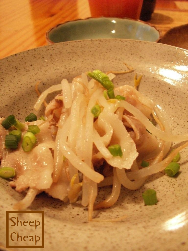 もやしと豚バラの蒸し物 (もやし19円。価格に負けて購入したので、もやしだらけ)
