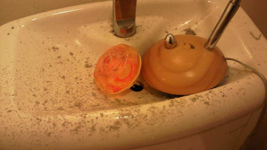 トイレは照明と換気扇のスイッチが同期?しているので、電気スタンドを持ち込んでおります。ねじが落ちたら困るので、流すタイプのあれは置きっぱなしです。