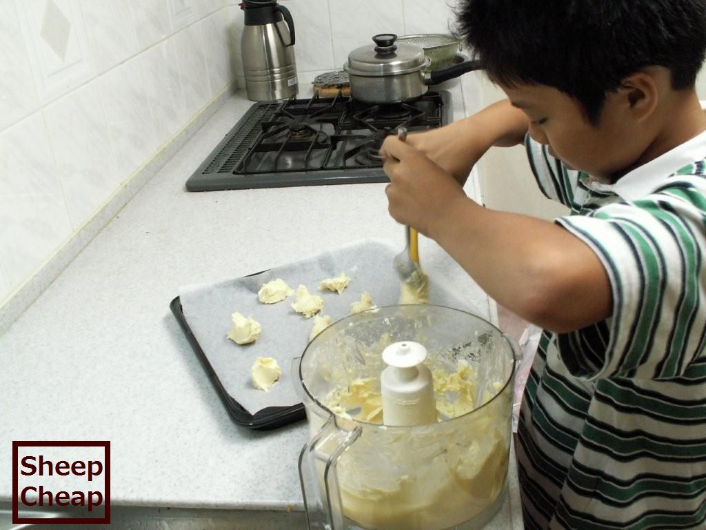 今日はクッキーだそうで、型抜きのいらないクッキーを。