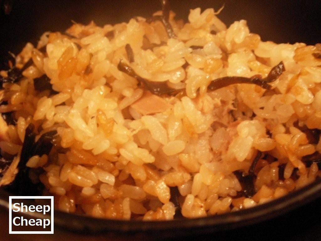2合のご飯を炊くように水加減をし、ふじっこの「ごま昆布」を1P、ツナ缶を(油を軽くきり)1缶いれ炊くだけ。