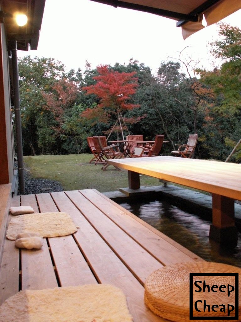 今日は日帰り温泉に行ってきました。写真は、玄関からお風呂に行く渡り廊下の脇の足湯。