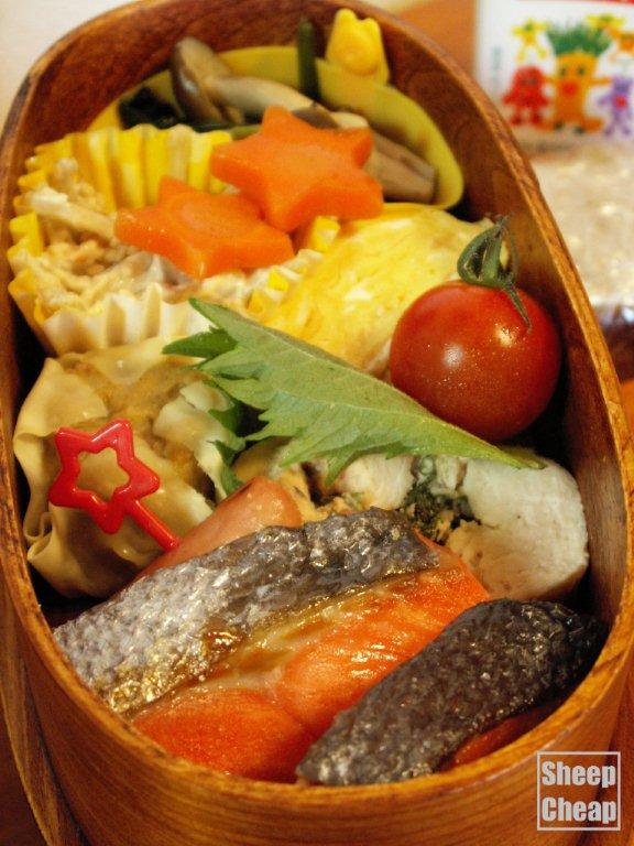 塩さけを焼いて入れようとしたら、どういう方向でも不細工で。そのうちポッキリと折れてしまいました。
