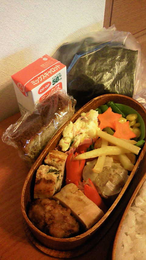 。明日は、二男もお弁当(おかずのみ)