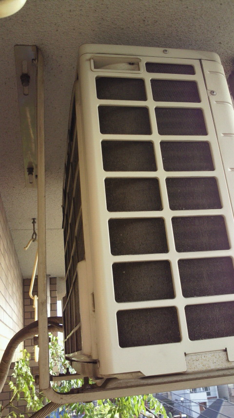 我が家はエアコンの室外機を吊しています。