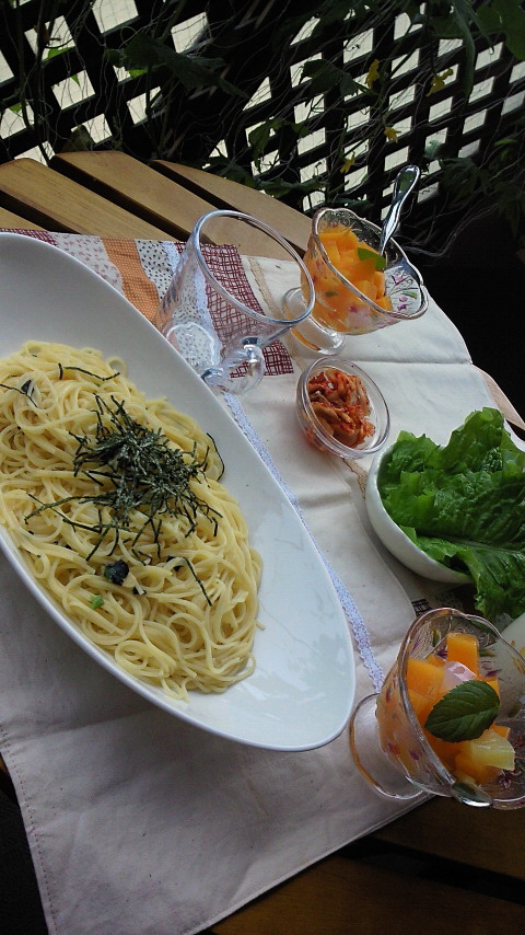 まずはお友達と持ち寄りランチ。