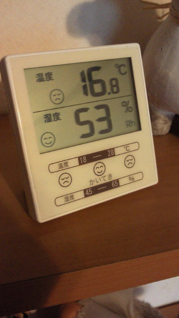 で、ファンヒーターを買ったので、ついでといってはなんですが、温湿度計も購入。COOさんから『湿度計は50%を保ちなさい』と教えていただき、タオルを二枚、干してみました。