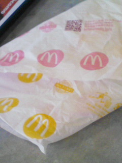 期間限定メニューハンバーガーの包み紙がシンプルに。コストダウンのために商品名プリントをやめたのかな?。