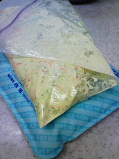 で、写真はジェルタイプのアイス枕に乗せてあら熱を取っているところ。
